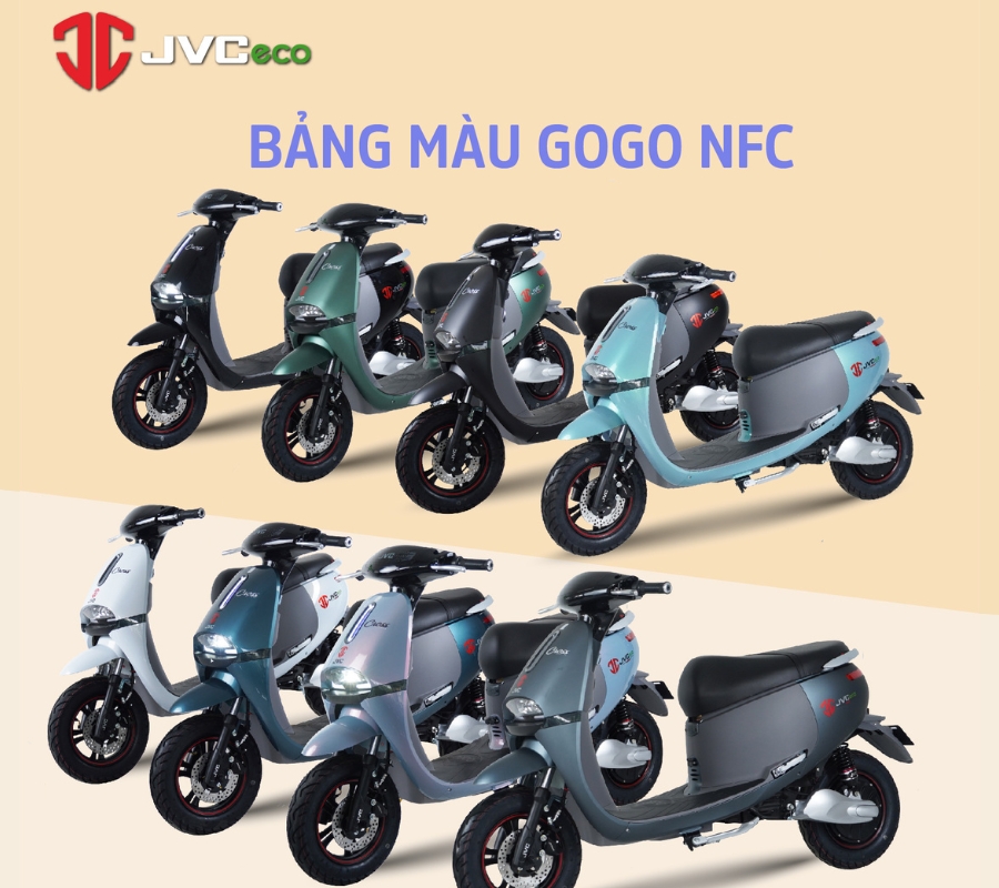 Một trong những dòng nổi bật là Gogo Cross NFC, mẫu xe đang được bán của thương hiệu JVC. Xe có thiết kế thời thượng, trang bị các tính năng hiện đại như công tắc Parking, xi nhan khẩn cấp, cốp rộng. Động cơ khoẻ, leo dốc dễ dàng, kết hợp cùng hệ thống 2 phanh đĩa tăng cường an toàn cho người lái.
